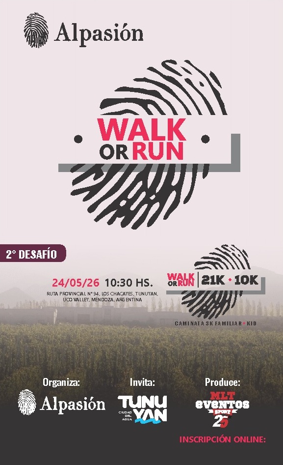 2do Desafío | AlPasión – Walk or Run 5K | Uco Valley Tunuyan, Mendoza Argentina – Domingo 26/05 – 10:30hs